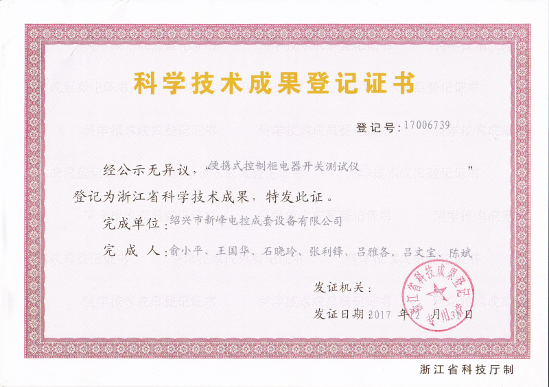 科技成果證書2017 17006740