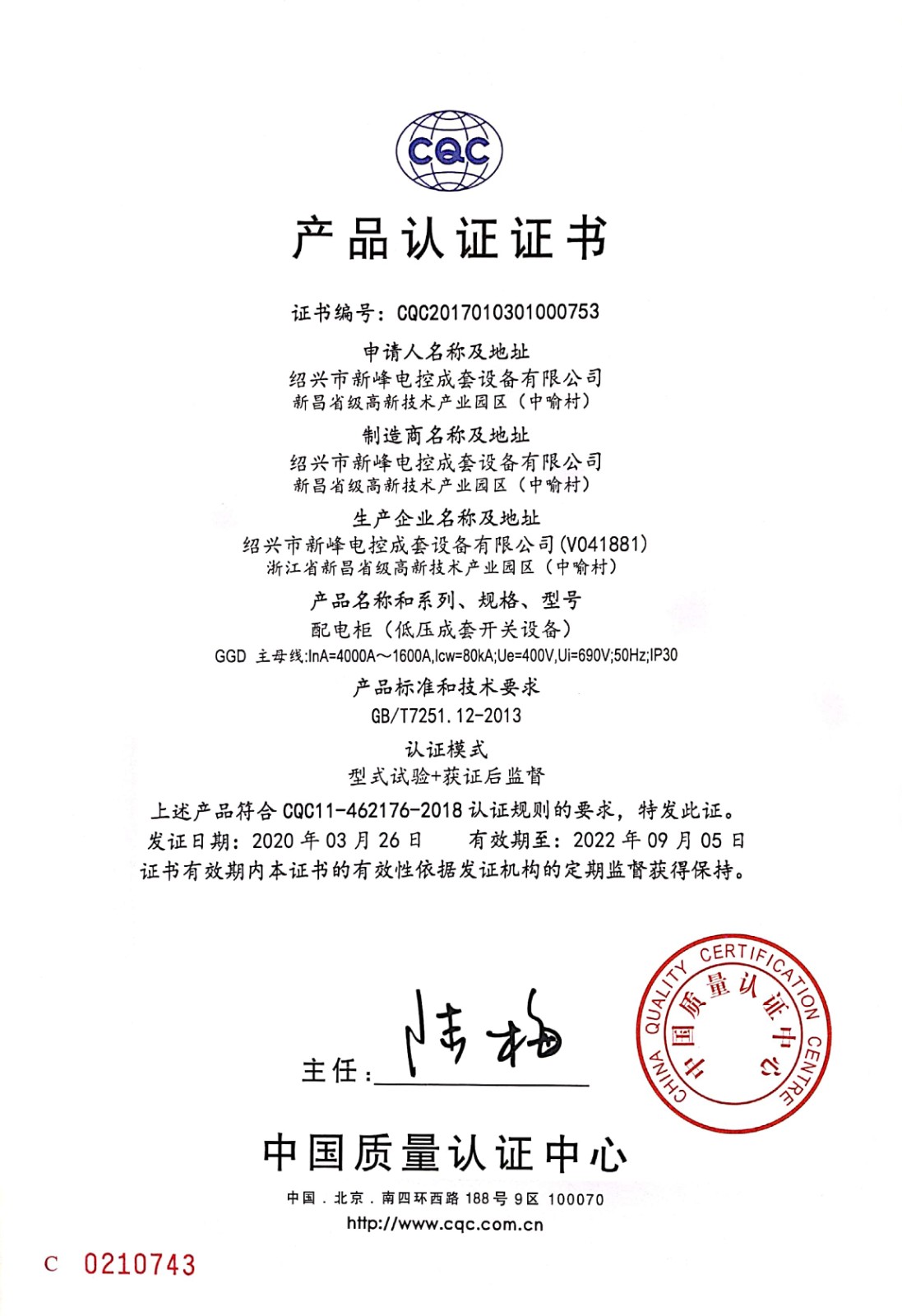 GGD--4000A-公司認(rèn)證證書